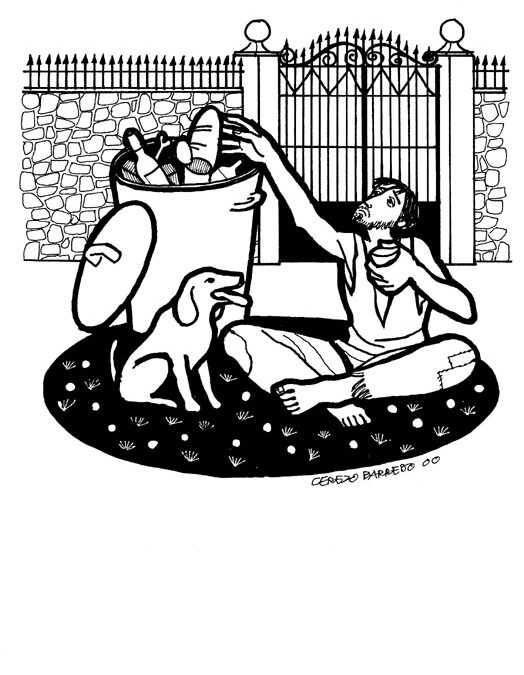 Hori dagoanean, begira zelango pozetara zabaldu geinkezan ebanjelioak, senideok: pobreak atean bertan daukaguz; asago joan barik aurkituko doguz. Hau jakiteak norbere ondasunei esangura eta urtenbide barri bat emoten deutse, eta hareen loturapetik askatze-bidean jarri geinkez. Ebanjelio txatal hau entzutean, ba, senideok, argi barri bat biztu daiteke gure bizitzan.